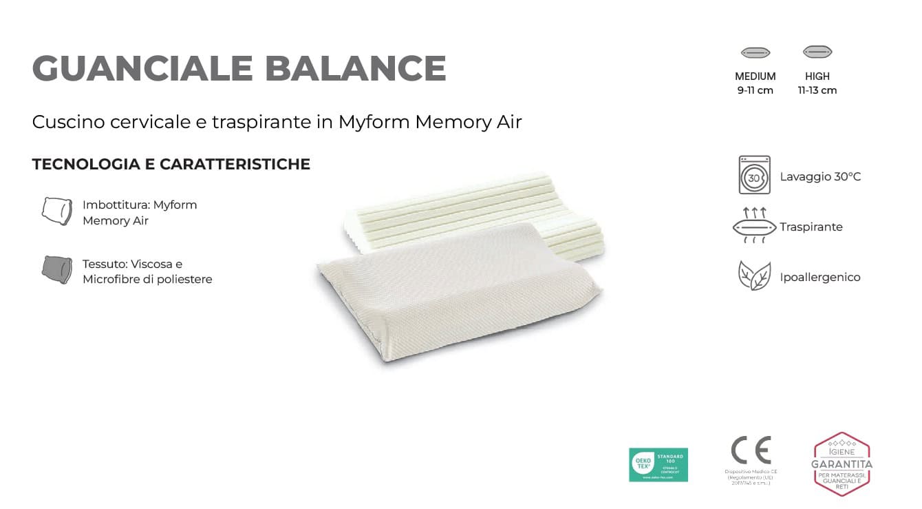 Balance di Dorelan è un cuscino cervicale e traspirante in Myform Memory Air.