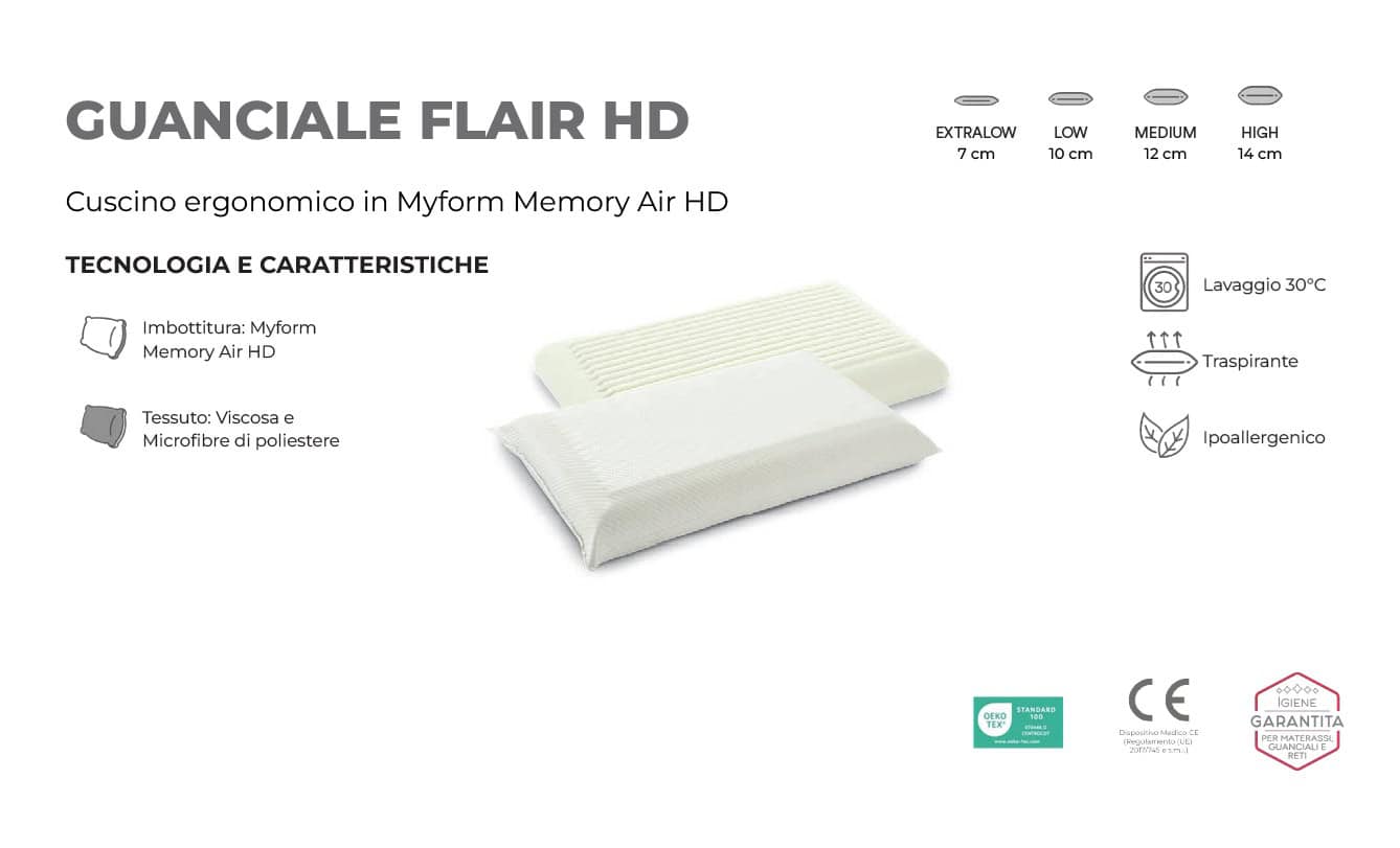 Flair HD di Dorelan è un cuscino ergonomico in Myform Memory Air HD.