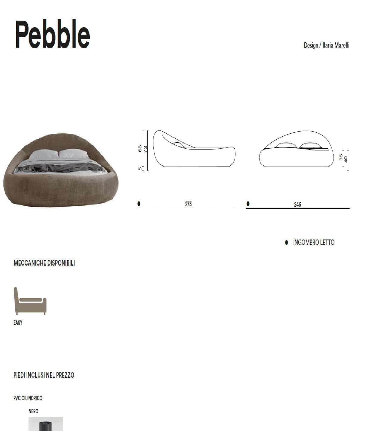 Nè rettangolare, nè tondo, Pebble è un letto dalle linee morbide. La silhouette irregolare, pensata dalla designer Ilaria Marelli e ispirata alle forme dei ciottoli levigati dall’acqua, è diventata iconica, evocativa e unica.